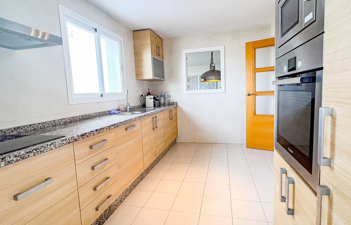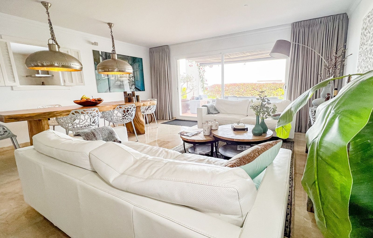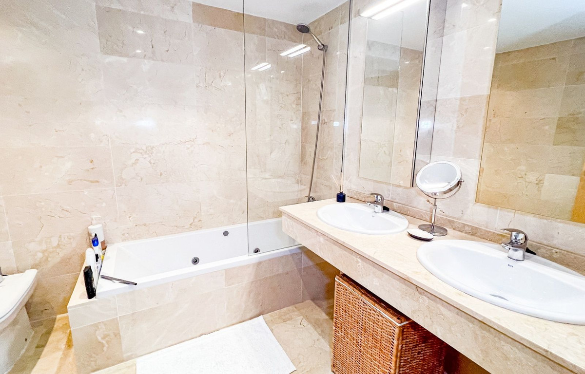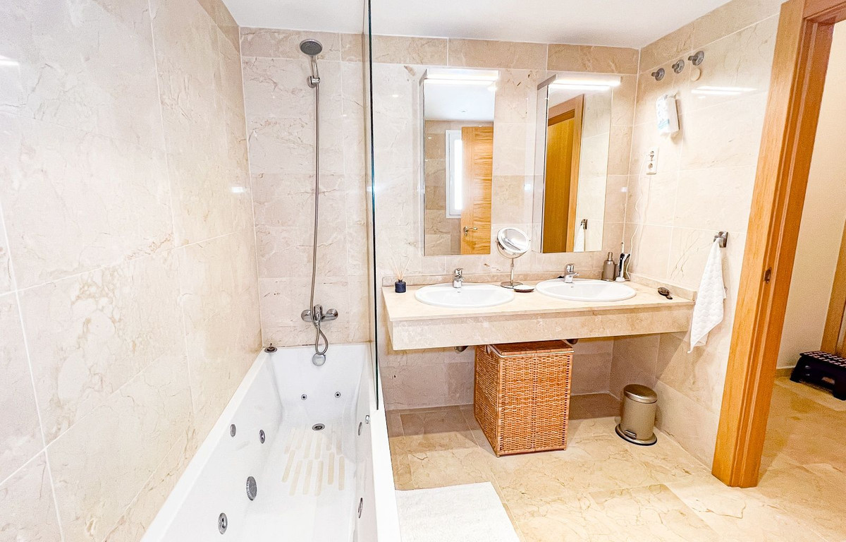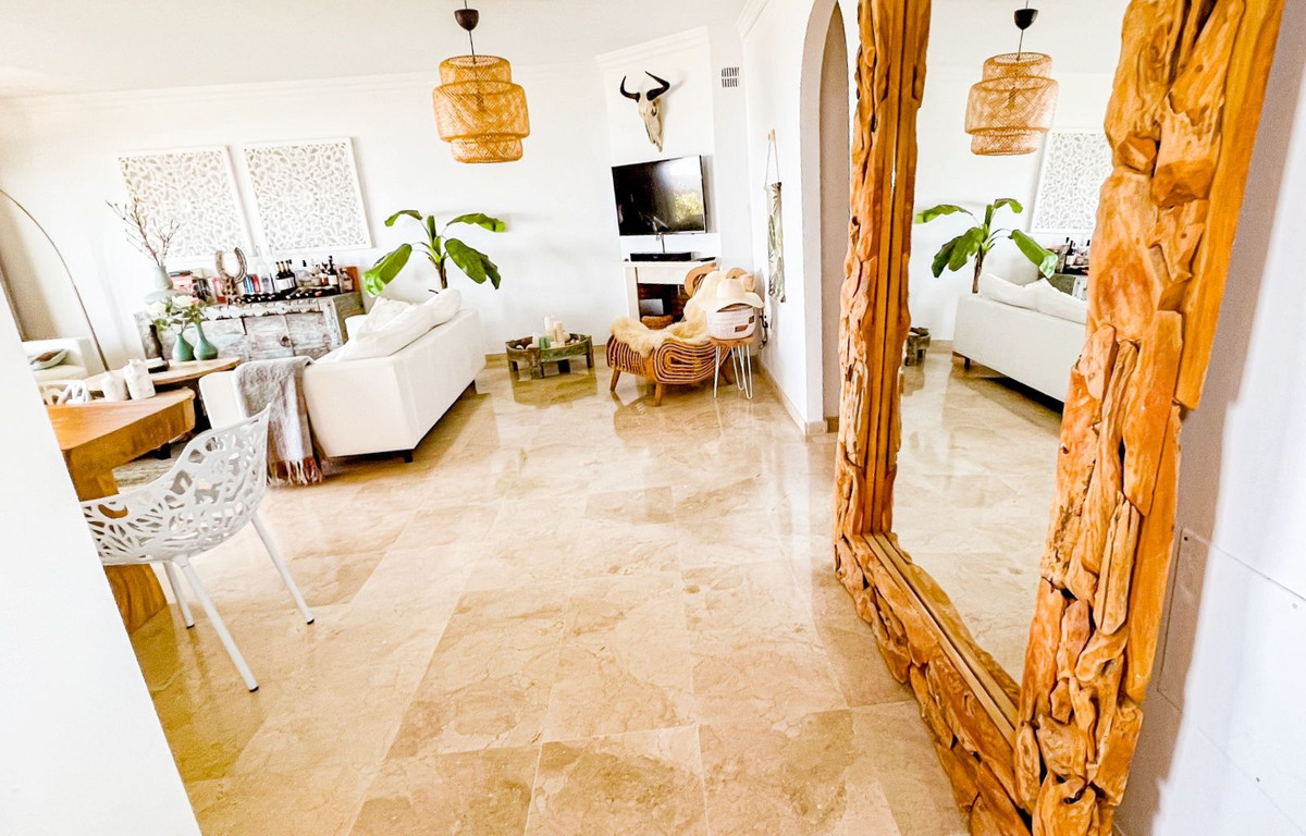 Este hermoso y espacioso apartamento en planta baja elevada ofrece impresionantes vistas de la costa y la zona circundante. La luminosa sala de estar, que cuenta con una chimenea abierta, se conecta sin problemas con la terraza privada y el jardín, proporcionando un espacio ideal para disfrutar del estilo de vida mediterráneo. La cocina moderna separada está equipada con todos los electrodomésticos y se complementa con un cuarto de lavado/utilidad separado. Los dos dormitorios cuentan con armarios empotrados para mayor comodidad. La propiedad cuenta con dos baños, uno con bañera y otro con ducha a ras de suelo. Un generoso jardín privado de 83m² con zona de barbacoa realza la vida al aire libre. El precio de compra de la propiedad incluye dos plazas de aparcamiento subterráneo y un trastero. Los residentes pueden disfrutar de las zonas comunes, que incluyen jardines bellamente ajardinados, una sauna y una gran piscina. Situada en la prestigiosa zona residencial de La Mairena, la propiedad goza de hermosas vistas de la costa y el paisaje circundante. La Mairena está idealmente situada entre La Cala y Marbella, con fácil acceso a servicios locales, incluyendo escuelas internacionales, instalaciones deportivas, campos de golf, restaurantes y hoteles. También está a solo 10 minutos en coche de la playa y del centro comercial de Elviria, que ofrece un supermercado, banco y una variedad de bares de tapas.