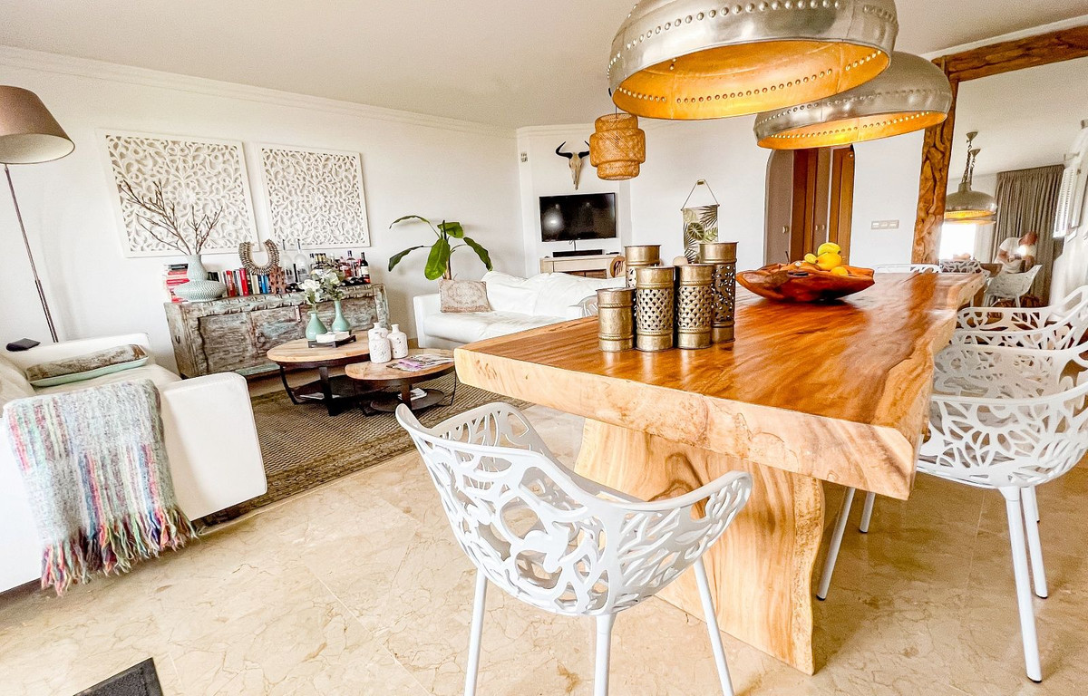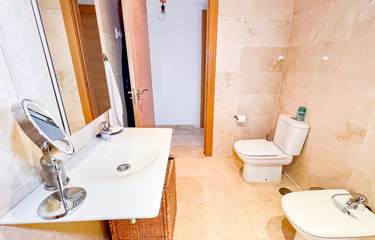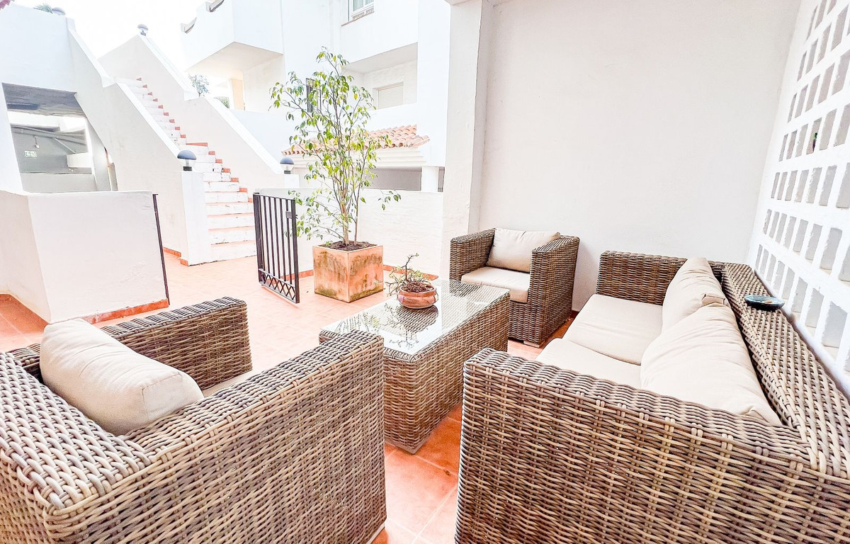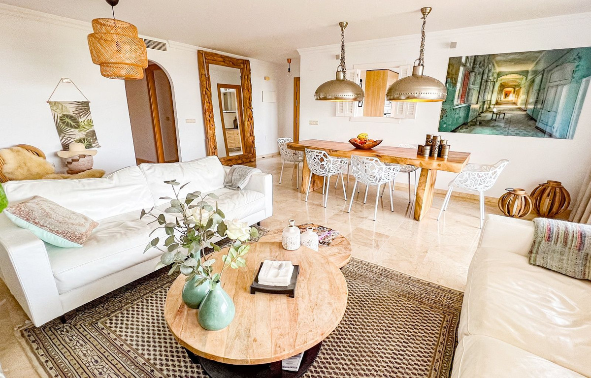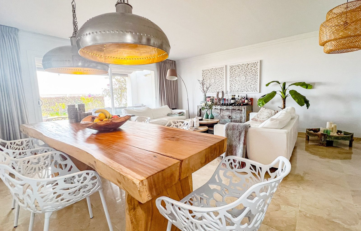 Este hermoso y espacioso apartamento en planta baja elevada ofrece impresionantes vistas de la costa y la zona circundante. La luminosa sala de estar, que cuenta con una chimenea abierta, se conecta sin problemas con la terraza privada y el jardín, proporcionando un espacio ideal para disfrutar del estilo de vida mediterráneo. La cocina moderna separada está equipada con todos los electrodomésticos y se complementa con un cuarto de lavado/utilidad separado. Los dos dormitorios cuentan con armarios empotrados para mayor comodidad. La propiedad cuenta con dos baños, uno con bañera y otro con ducha a ras de suelo. Un generoso jardín privado de 83m² con zona de barbacoa realza la vida al aire libre. El precio de compra de la propiedad incluye dos plazas de aparcamiento subterráneo y un trastero. Los residentes pueden disfrutar de las zonas comunes, que incluyen jardines bellamente ajardinados, una sauna y una gran piscina. Situada en la prestigiosa zona residencial de La Mairena, la propiedad goza de hermosas vistas de la costa y el paisaje circundante. La Mairena está idealmente situada entre La Cala y Marbella, con fácil acceso a servicios locales, incluyendo escuelas internacionales, instalaciones deportivas, campos de golf, restaurantes y hoteles. También está a solo 10 minutos en coche de la playa y del centro comercial de Elviria, que ofrece un supermercado, banco y una variedad de bares de tapas.