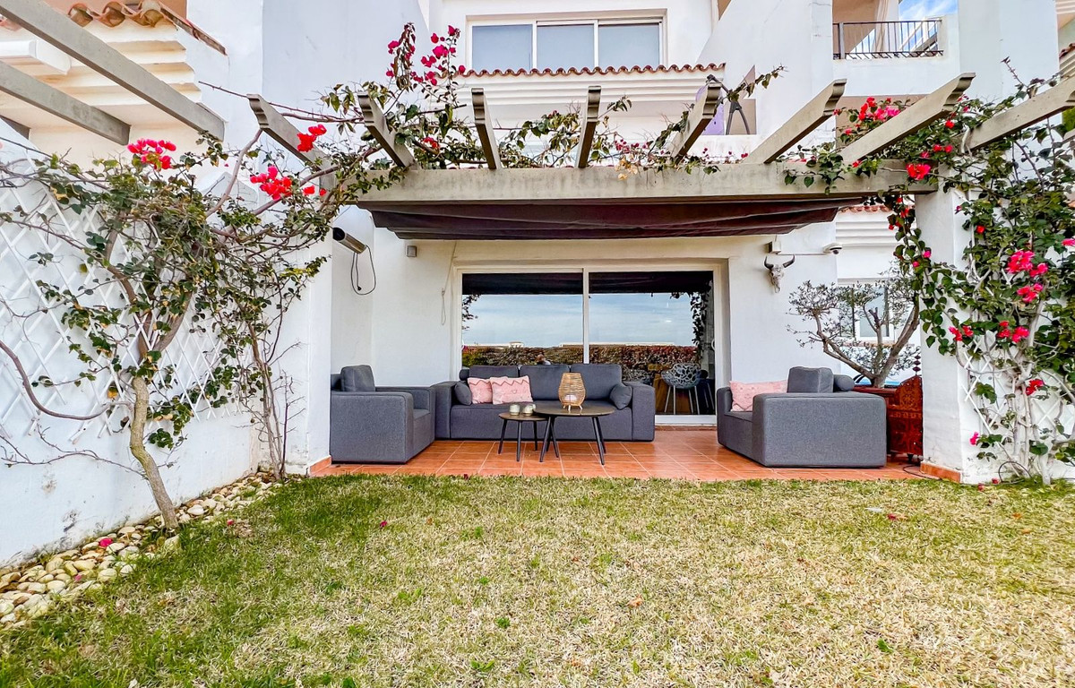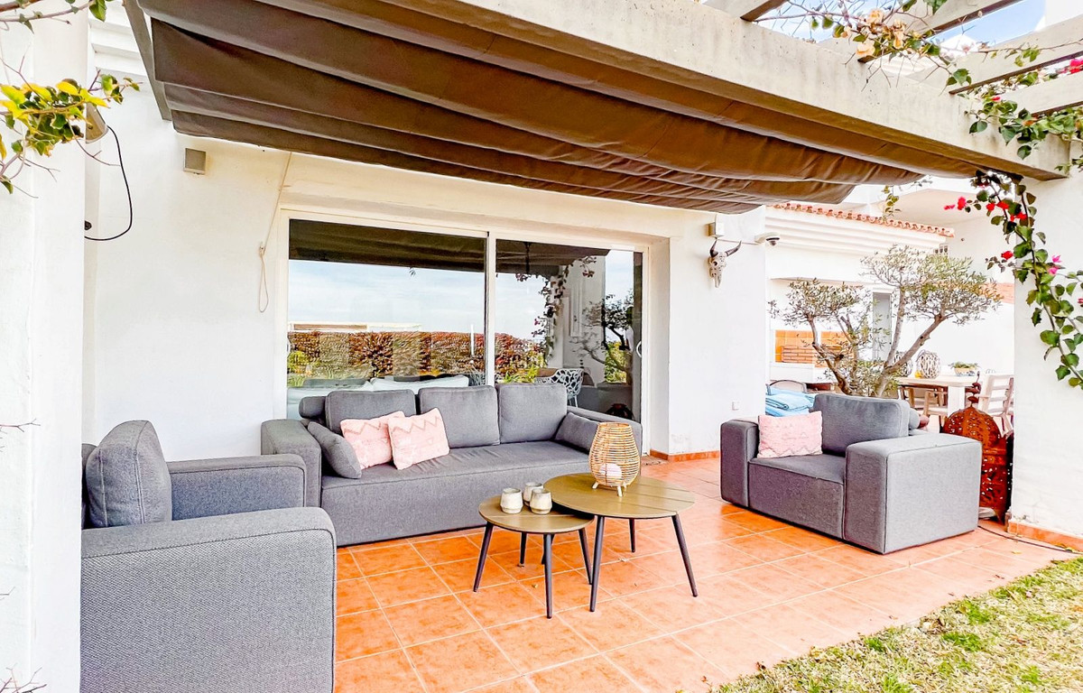 This beautiful and spacious, elevated ground floor apartment offers stunning views of the coastline and the surrounding area. The luminous living room featuring an open fireplace, seamlessly connects to the private terrace and garden, providing an ideal space to enjoy the Mediterranean lifestyle. The separate, modern kitchen is fitted with all appliances and is complemented by a separate laundry/utility room. The two bedrooms feature built-in wardrobes for added convenience. The property boasts two bathrooms, one featuring a bathtub and the other a walk-in shower. A generous 83m² private garden with a BBQ area enhances outdoor living. The property purchase price incudes two underground parking spaces and a storage room. Residents can indulge in the communal areas, which encompass beautifully landscaped gardens, a sauna, and a large pool. Situated in the prestigious residential area of La Mairena, the property enjoys beautiful views of the coastline and the surrounding landscape. La Mairena is ideally situated between La Cala and Marbella, with easy access to local amenities, including international schools, sports facilities, golf courses, restaurants and hotels. It is also just a 10-minute drive to the beach and Elviria commercial centre, offering a supermarket, bank and a variety of tapas bars.