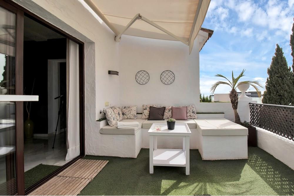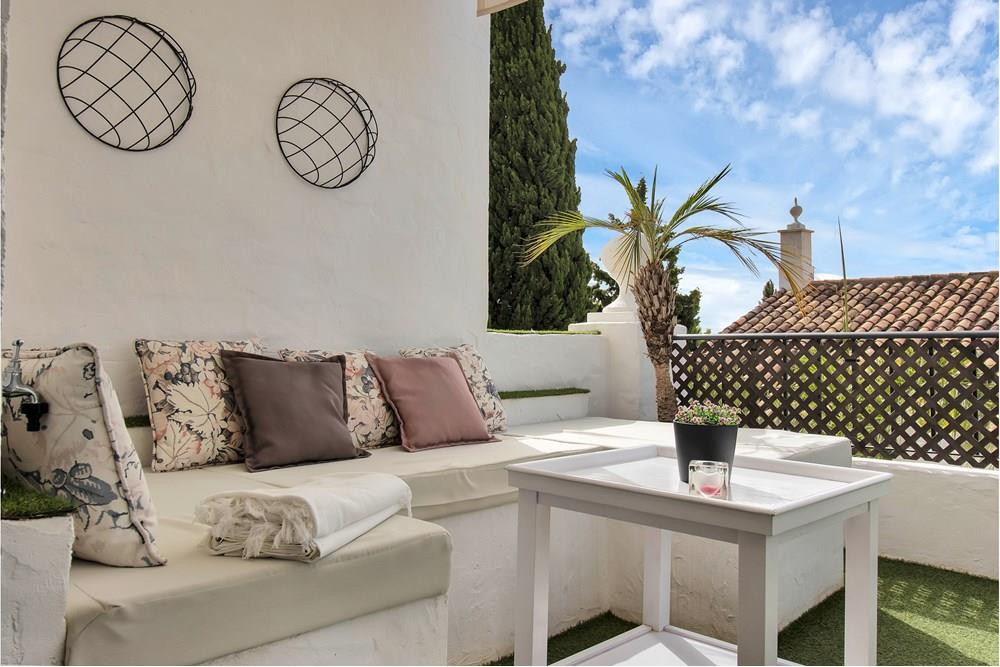Between Los Arqueros and La Quinta Golf Country Club, it is located this beautiful ground-floor apartment, full of light, and spaciousness, with a sense of privacy just like a semidetached house, in a small and exclusive community in the Colinas area of Marbella. (Benahavis)In it, we find 2 spacious rooms with closets, plus 1 room/study, two full bathrooms, one of its en-suite, and a laundry room that serves as a storage room due to its large dimensions. The kitchen is spacious and all the rooms are exterior, the magnificent and quiet views with partial views of the sea from one of the terraces and a large community pool with unobstructed views of the sea and the city, community parking, in a gated community, just owners accessed. Both day and night this is a place to marvel at the views, the tranquillity and the proximity to places of interest.Less than 15 minutes from schools such as Atalaya and Laude, commercial areas, and recreational, social or sports activities. This place is to live it and enjoy it to the fullest.Call now, and make your appointment to see and buy this spectacular property. GGA (GP1)