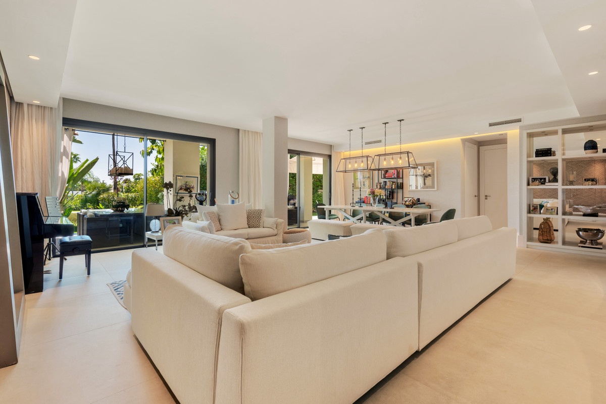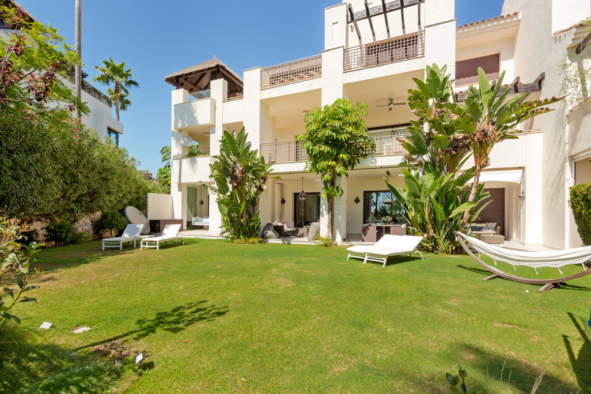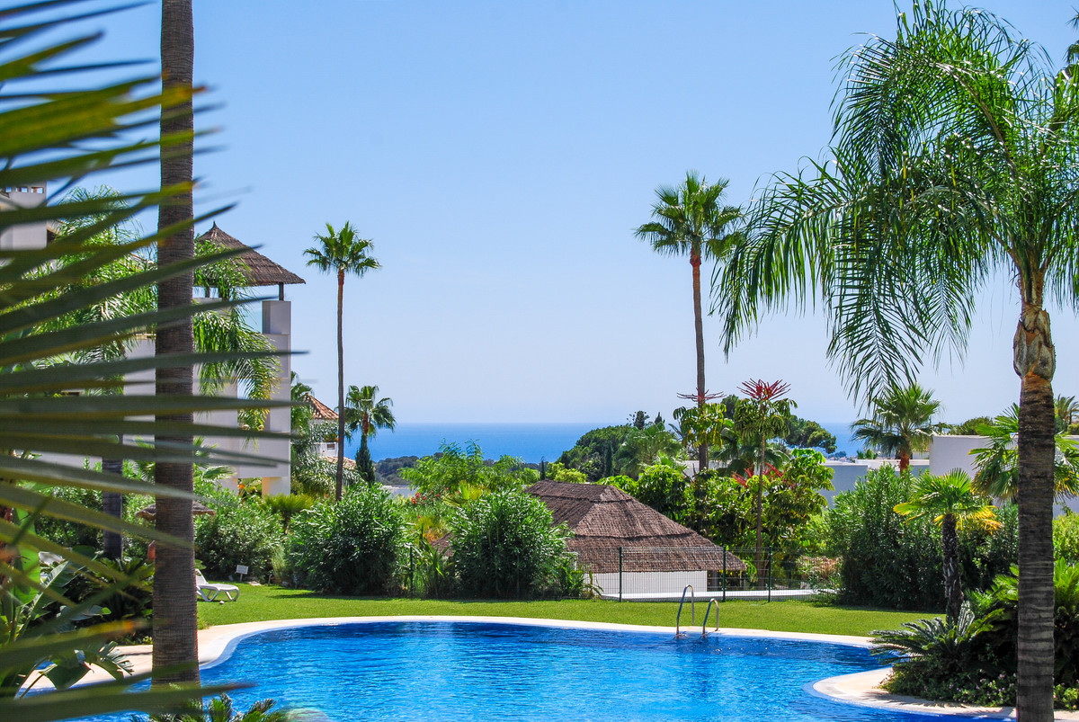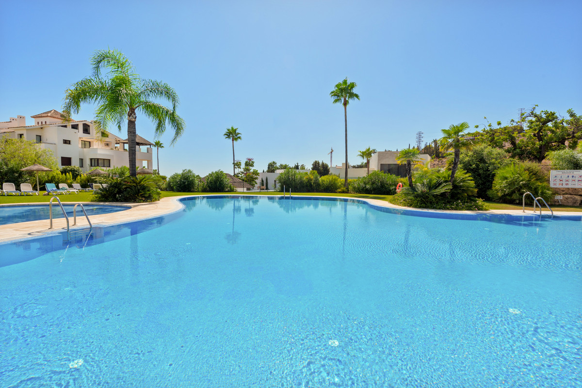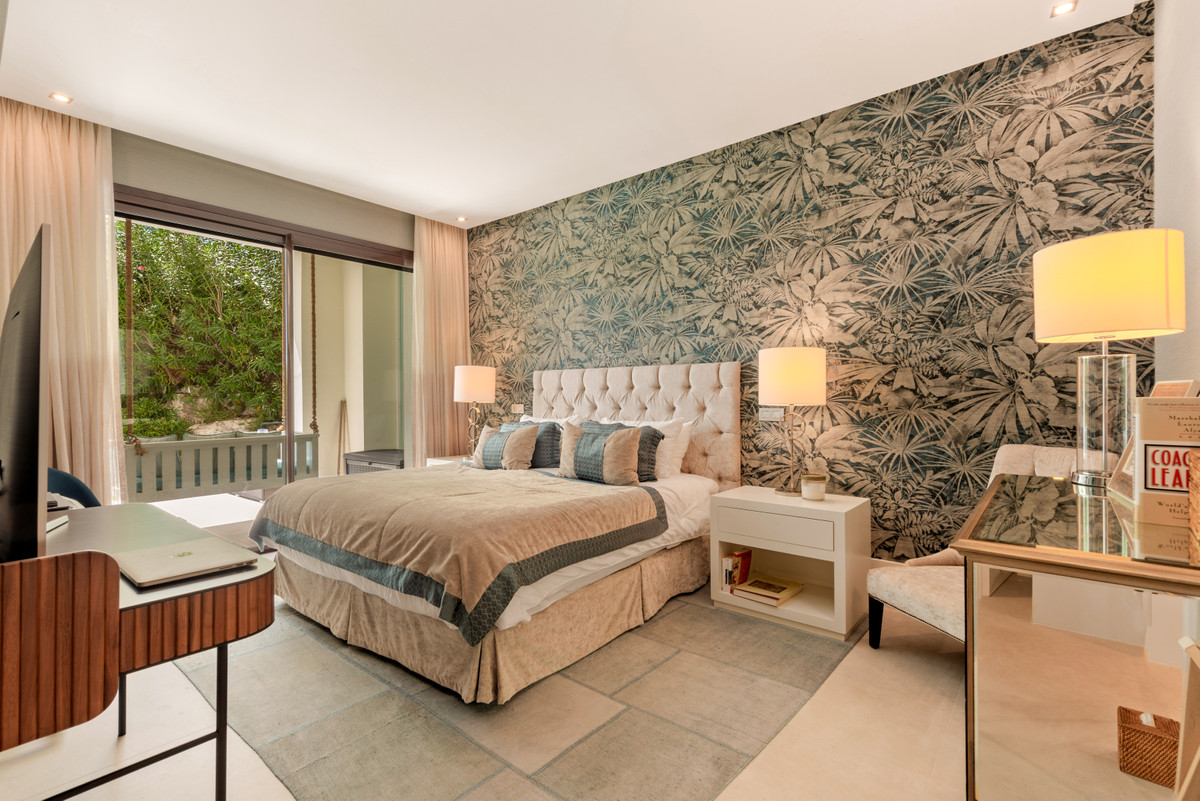 Unique, huge & luxury apartment with classy reform and a lot of class in privileged urbanization.This splendid luxury apartment of 270,05 sqm including the housing & porch , located in Mirador del Paraíso, Benahavis, combines exquisite decoration with cutting-edge designs. It offers a spacious and bright living space immersed in a natural environment that exudes tranquility. This is a unique property, the result of meticulous renovation that merged two apartments with 2 and 3 bedrooms.The heart of this home is a spacious living-dining area that connects to a cozy lounge. From here, you access a generous terrace & a very beautiful community garden of 269 sqm for private use that opens to a pool with panoramic views of the sea and the mountains. The kitchen is fully equipped and conveniently adjoins a laundry room. It is also super warm, surrounded by vegetation.This impressive property features 5 bedrooms, each with its own en-suite bathroom and amazing style. The Master bedroom even boasts a spacious walk-in closet. Additionally, a guest toilet is included for added convenience. Two storage rooms and 2 parking spaces complete the amenities of this exclusive residence. Without a doubt, it is a luxury apartment at all levels. ALA
