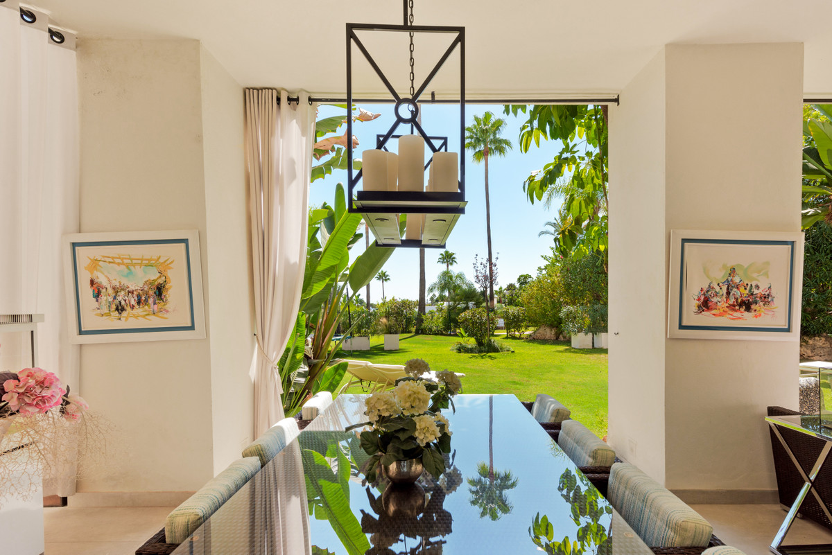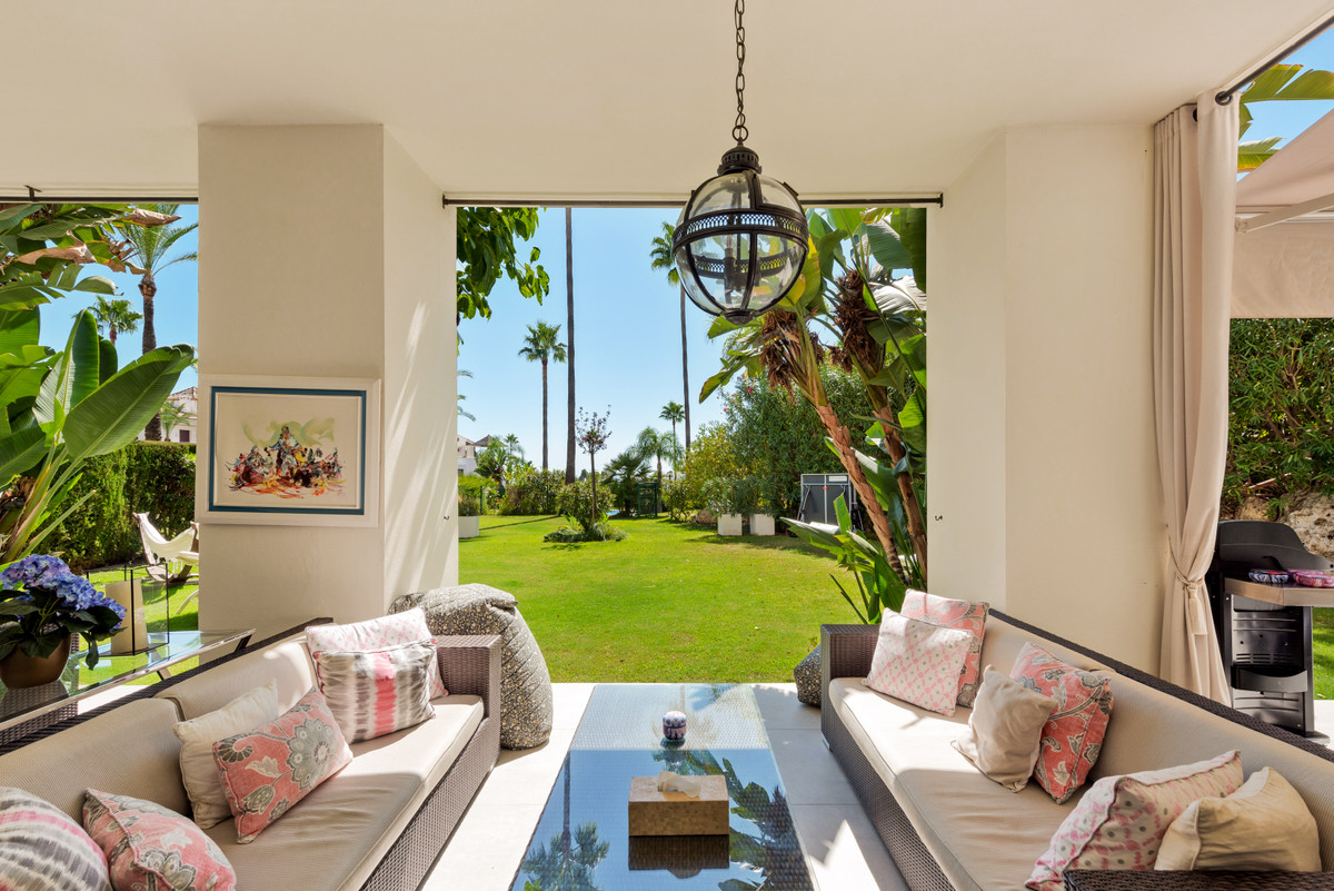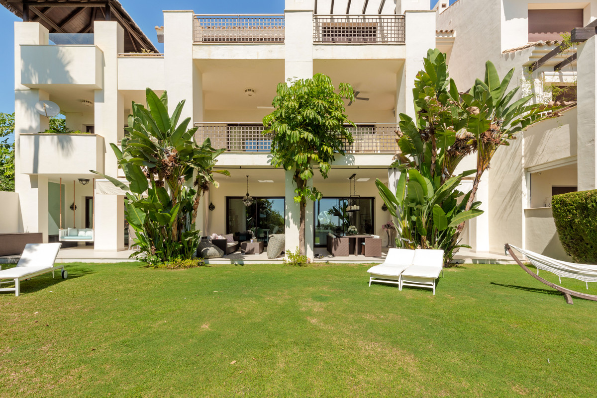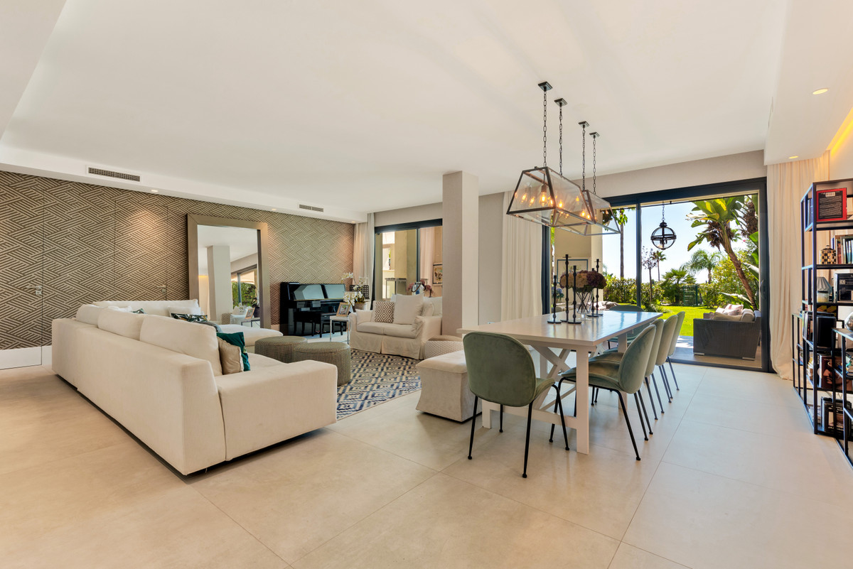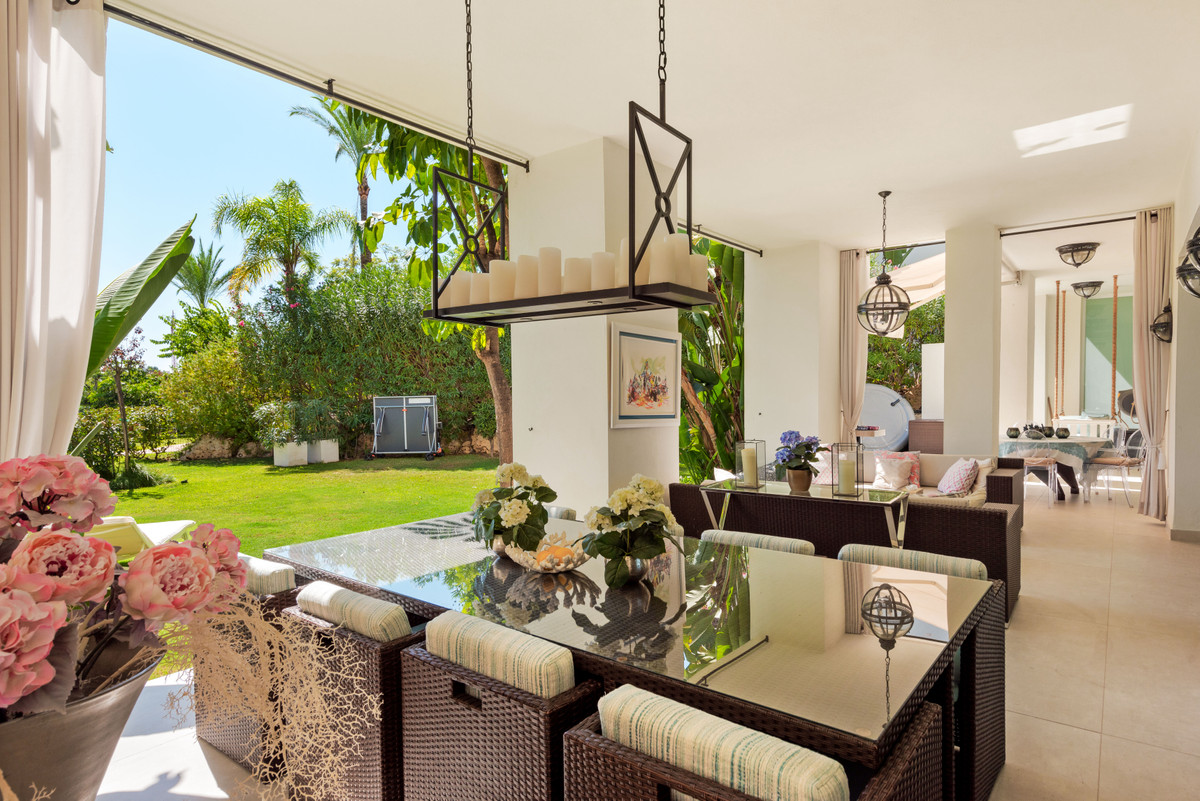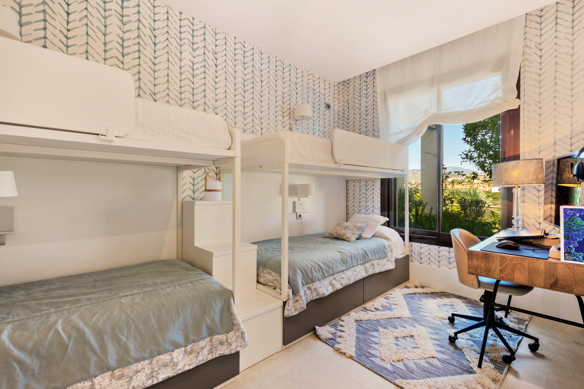 Unique, huge & luxury apartment with classy reform and a lot of class in privileged urbanization.This splendid luxury apartment of 270,05 sqm including the housing & porch , located in Mirador del Paraíso, Benahavis, combines exquisite decoration with cutting-edge designs. It offers a spacious and bright living space immersed in a natural environment that exudes tranquility. This is a unique property, the result of meticulous renovation that merged two apartments with 2 and 3 bedrooms.The heart of this home is a spacious living-dining area that connects to a cozy lounge. From here, you access a generous terrace & a very beautiful community garden of 269 sqm for private use that opens to a pool with panoramic views of the sea and the mountains. The kitchen is fully equipped and conveniently adjoins a laundry room. It is also super warm, surrounded by vegetation.This impressive property features 5 bedrooms, each with its own en-suite bathroom and amazing style. The Master bedroom even boasts a spacious walk-in closet. Additionally, a guest toilet is included for added convenience. Two storage rooms and 2 parking spaces complete the amenities of this exclusive residence. Without a doubt, it is a luxury apartment at all levels. ALA