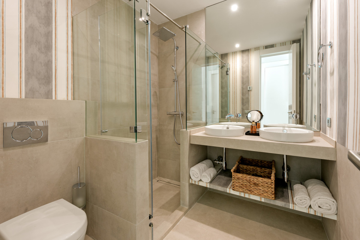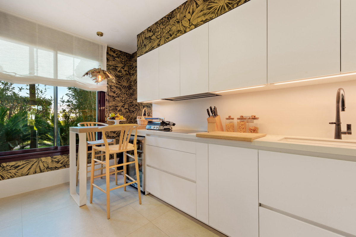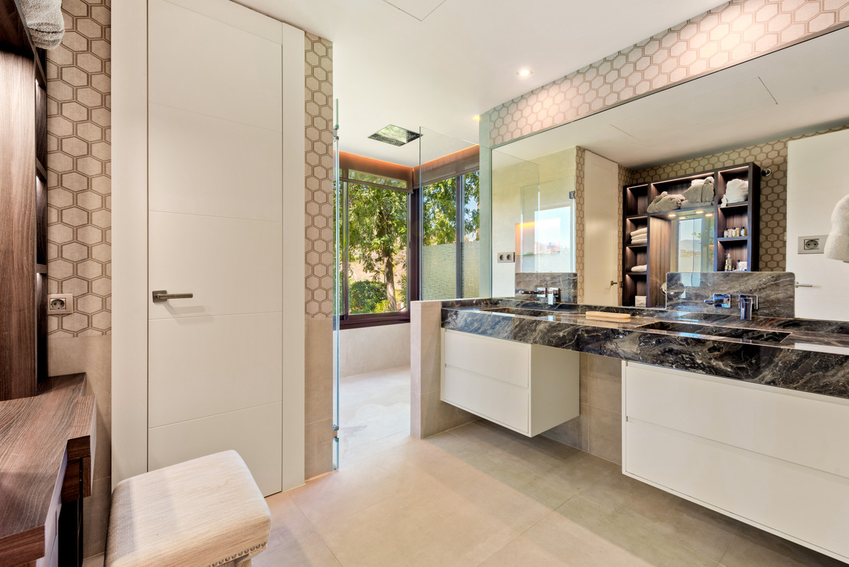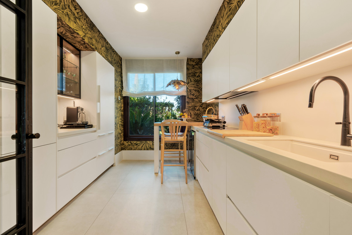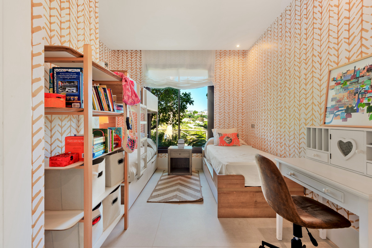 Unique, huge & luxury apartment with classy reform and a lot of class in privileged urbanization.This splendid luxury apartment of 270,05 sqm including the housing & porch , located in Mirador del Paraíso, Benahavis, combines exquisite decoration with cutting-edge designs. It offers a spacious and bright living space immersed in a natural environment that exudes tranquility. This is a unique property, the result of meticulous renovation that merged two apartments with 2 and 3 bedrooms.The heart of this home is a spacious living-dining area that connects to a cozy lounge. From here, you access a generous terrace & a very beautiful community garden of 269 sqm for private use that opens to a pool with panoramic views of the sea and the mountains. The kitchen is fully equipped and conveniently adjoins a laundry room. It is also super warm, surrounded by vegetation.This impressive property features 5 bedrooms, each with its own en-suite bathroom and amazing style. The Master bedroom even boasts a spacious walk-in closet. Additionally, a guest toilet is included for added convenience. Two storage rooms and 2 parking spaces complete the amenities of this exclusive residence. Without a doubt, it is a luxury apartment at all levels. ALA
