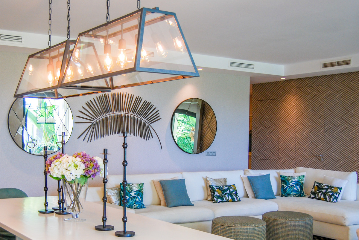 Apartamento único, enorme y de lujo con reforma elegante y mucha clase en urbanización privilegiada.Este espléndido apartamento de lujo de 270,05 m², incluyendo la vivienda y el porche, se encuentra en Mirador del Paraíso, Benahavís, y combina una exquisita decoración con diseños de vanguardia. Ofrece un amplio y luminoso espacio habitable inmerso en un entorno natural que emana tranquilidad. Esta propiedad es única, resultado de una meticulosa renovación que fusionó dos apartamentos de 2 y 3 habitaciones.El corazón de esta vivienda es una espaciosa zona de estar y comedor que se conecta con un acogedor salón. Desde aquí, se accede a una generosa terraza y a un hermoso jardín comunitario de 269 metros cuadrados de uso privado, que se abre hacia una piscina con vistas panorámicas al mar y a las montañas. La cocina está completamente equipada y convenientemente adyacente a una sala de lavandería. Además, está rodeada de vegetación, lo que la hace muy cálida.Esta impresionante propiedad cuenta con 5 habitaciones, cada una con su propio baño en suite y un estilo asombroso. La habitación principal incluso cuenta con un espacioso vestidor. Además, se incluye un aseo muy tropical de visitas para mayor comodidad. Dos trasteros y 2 plazas de aparcamiento completan las comodidades de esta residencia exclusiva. Sin lugar a dudas, es un apartamento de lujo en todos los sentidos. ALA