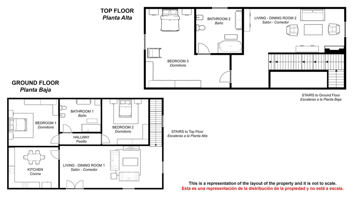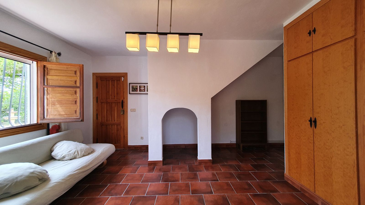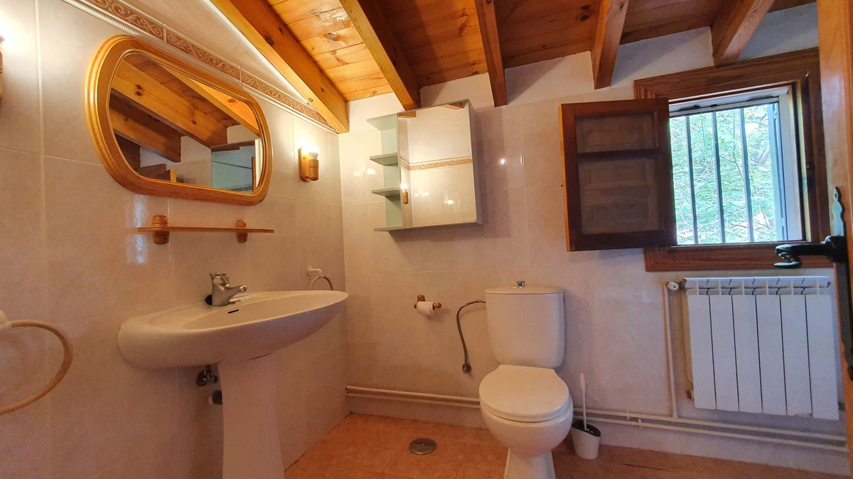 La planta baja tiene dos dormitorios amplios, baño completo, salón y cocina equipada. En la segunda planta hay una sala de estar muy acogedora con chimenea y un dormitorio con baño en suite. La casa tiene aire acondicionado frio / calor en todas las habitaciones, chimenea, calefacción central por radiadores (caldera de gasoil), techos altos de madera y materiales de primera calidad.
