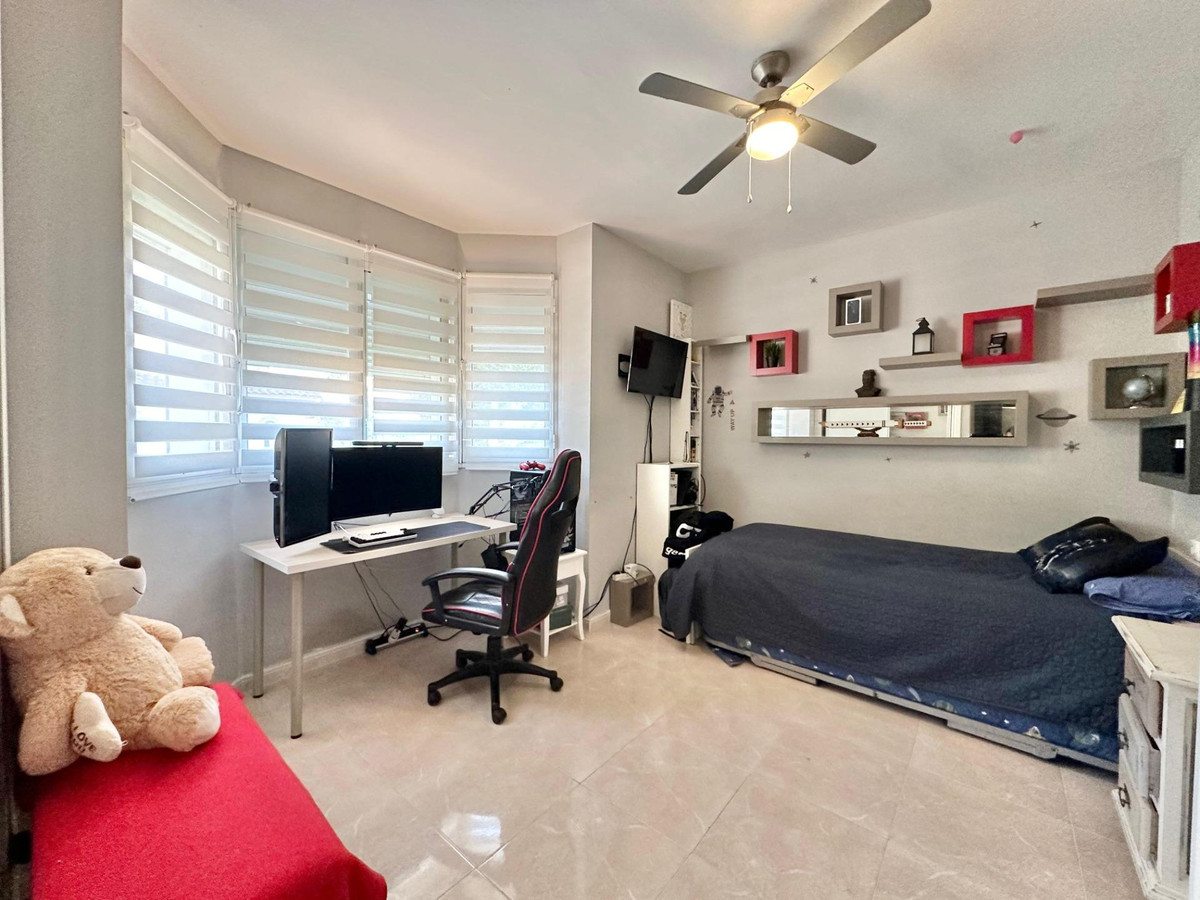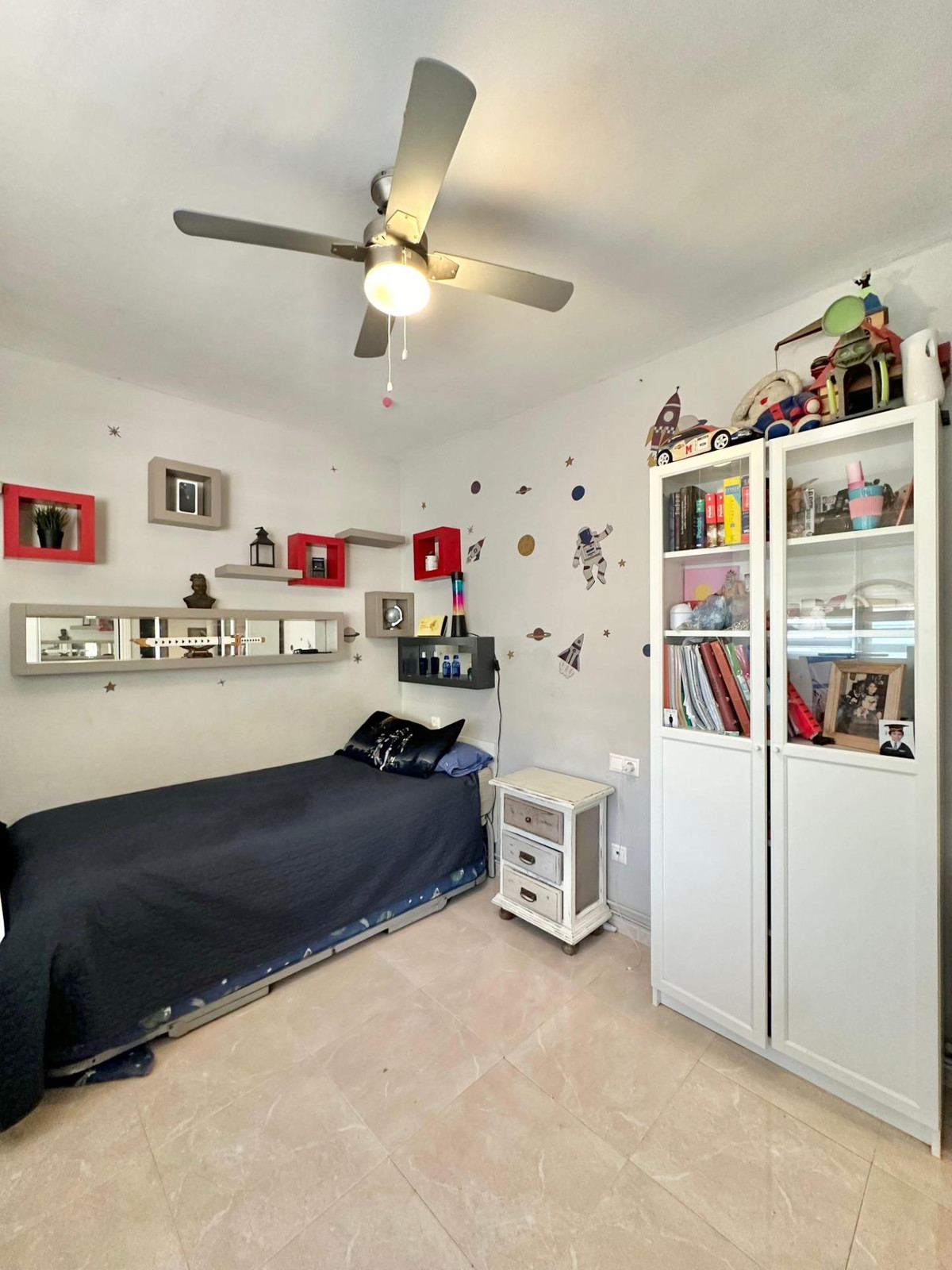 It is distributed over two floors, with three bedrooms, two bathrooms, a toilet, a fully equipped kitchen and a bright living-dining room that opens to a pleasant private terrace and community pool.