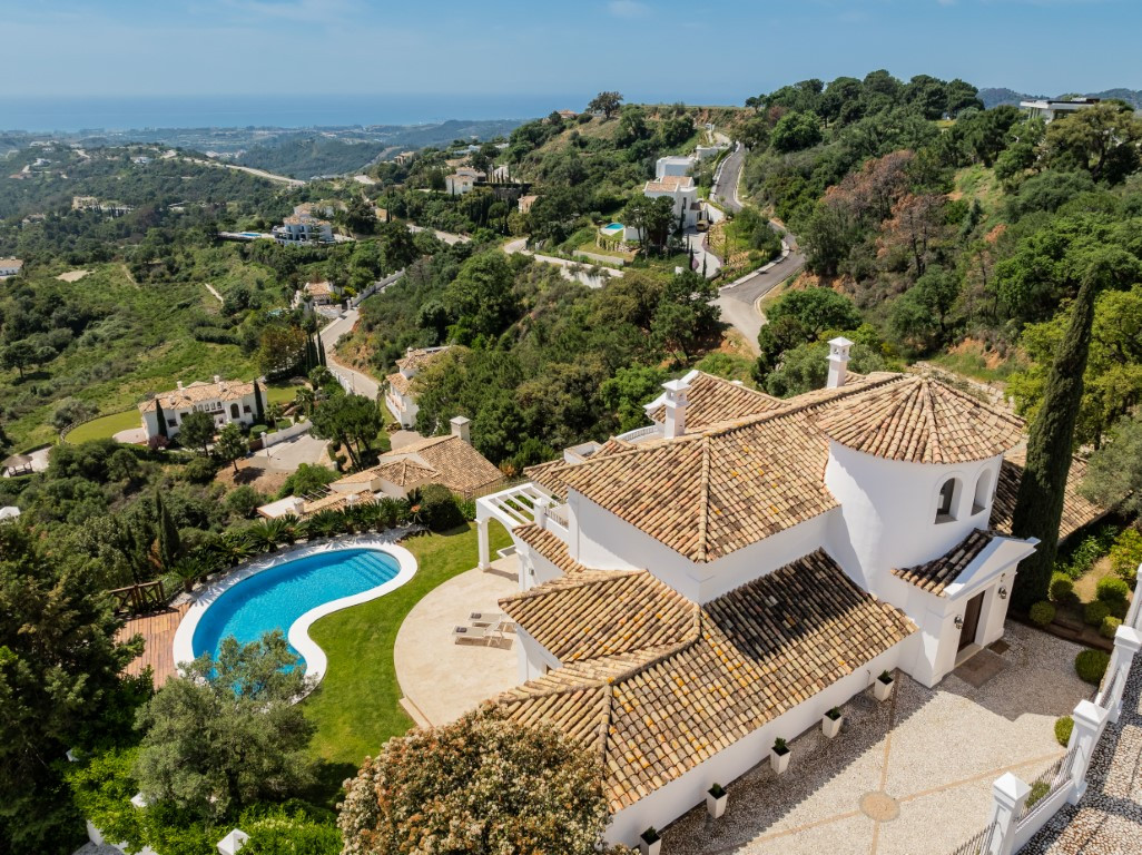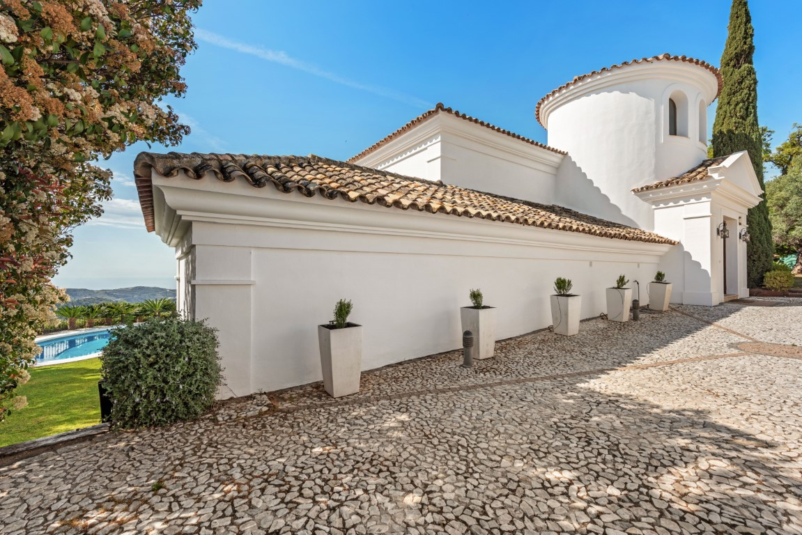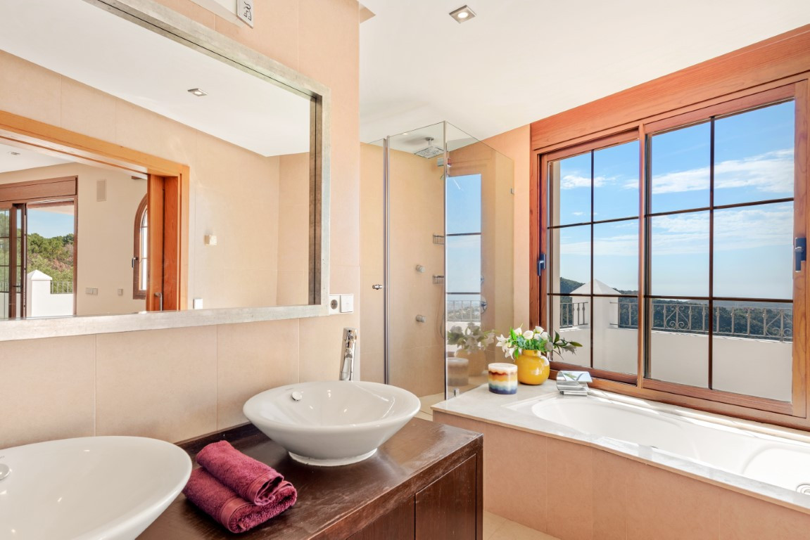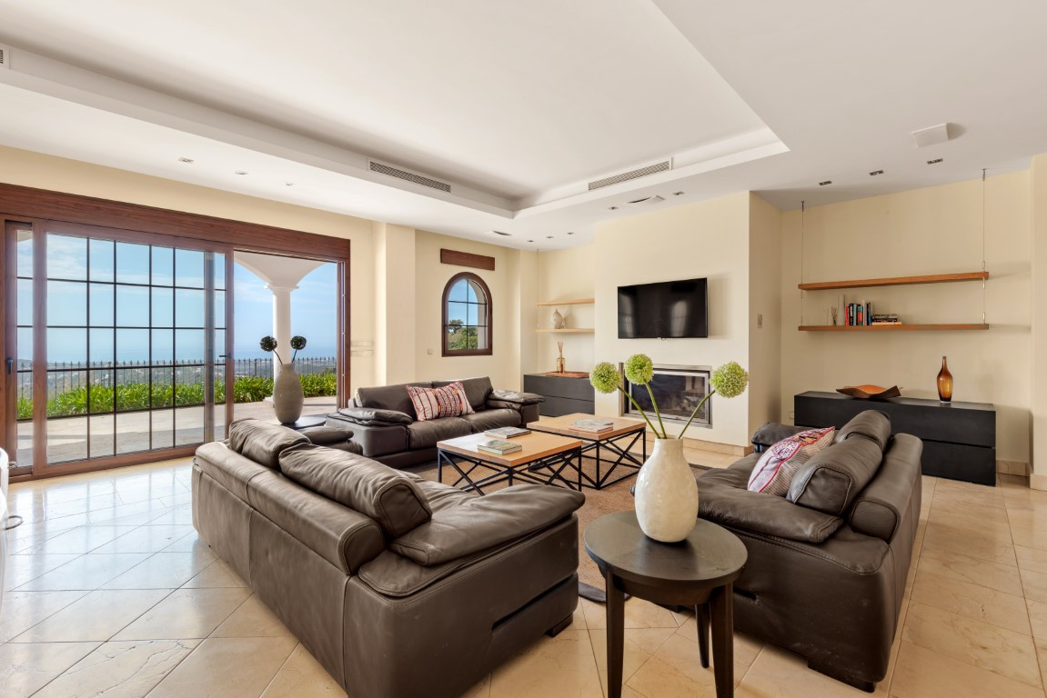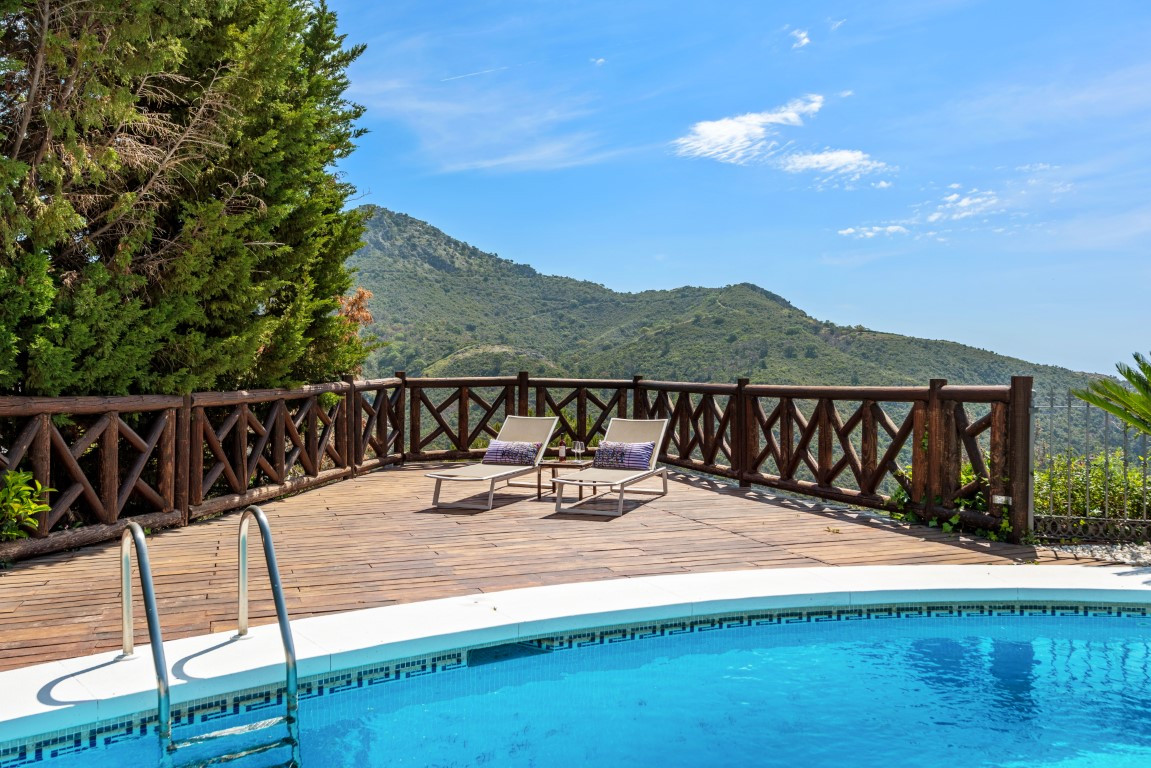Esta exclusiva villa, con sus majestuosos 889 metros cuadrados de construcción, ofrece una experiencia única y encantadora en la prestigiosa urbanización de Montemayor, en Benahavís. Construida en 2007, esta propiedad es más que una simple casa; es un oasis de lujo y confort que te permite sumergirte en un estilo de vida idílico.Adentrarse en esta villa es adentrarse en un mundo de opulencia y elegancia. Con más de 20 diferentes espacios interiores, incluyendo 5 dormitorios, 5 baños y un aseo, cada rincón está diseñado para deleitar tus sentidos y proporcionarte la máxima comodidad.La amplia zona principal te sorprenderá con vistas panorámicas al mar y a la montaña, invitándote a sumergirte en la belleza natural que rodea la propiedad. El luminoso salón, con sus enormes ventanales y acceso directo al exuberante jardín, te ofrece un refugio acogedor donde relajarte junto a la chimenea. La cocina abierta y el espacioso comedor son el escenario perfecto para disfrutar de deliciosas comidas mientras contemplas el paisaje. Y no podemos olvidar la sala de desayunos, un lugar especial donde comenzar el día con vistas al campo y a la piscina, despertando todos tus sentidos.El jardín de ensueño es una verdadera joya, con su mirador de madera que te ofrece vistas impresionantes de las montañas y del mar Mediterráneo. Disfruta del aire fresco y el sol en la piscina exterior o relájate en la terraza semi cubierta mientras te deleitas con la tranquilidad del entorno.Pero la villa no se detiene aquí. También cuenta con una impresionante piscina interior, sauna y baño turco, perfectos para relajarte y rejuvenecer cuerpo y mente. Además, múltiples trasteros de almacenaje, una sala de cine, una sala de juegos, lavandería y un garaje cerrado con capacidad para hasta 4 vehículos completan las comodidades de esta residencia de ensueño.Recientemente pintada tanto en su interior como en su exterior y su potencial es innegable. Convierte esta propiedad única en tu propio paraíso personal y crea recuerdos inolvidables en un entorno de lujo y elegancia sin igual. ¡Bienvenido a tu soñado hogar! ALA