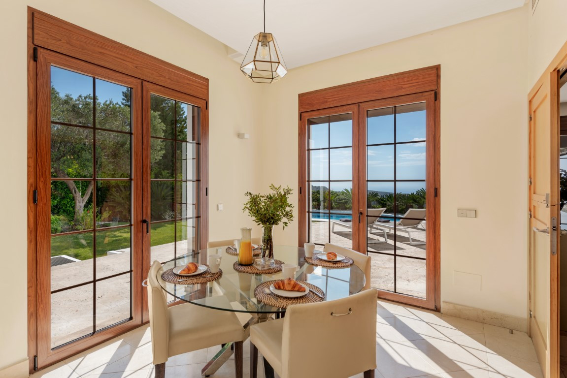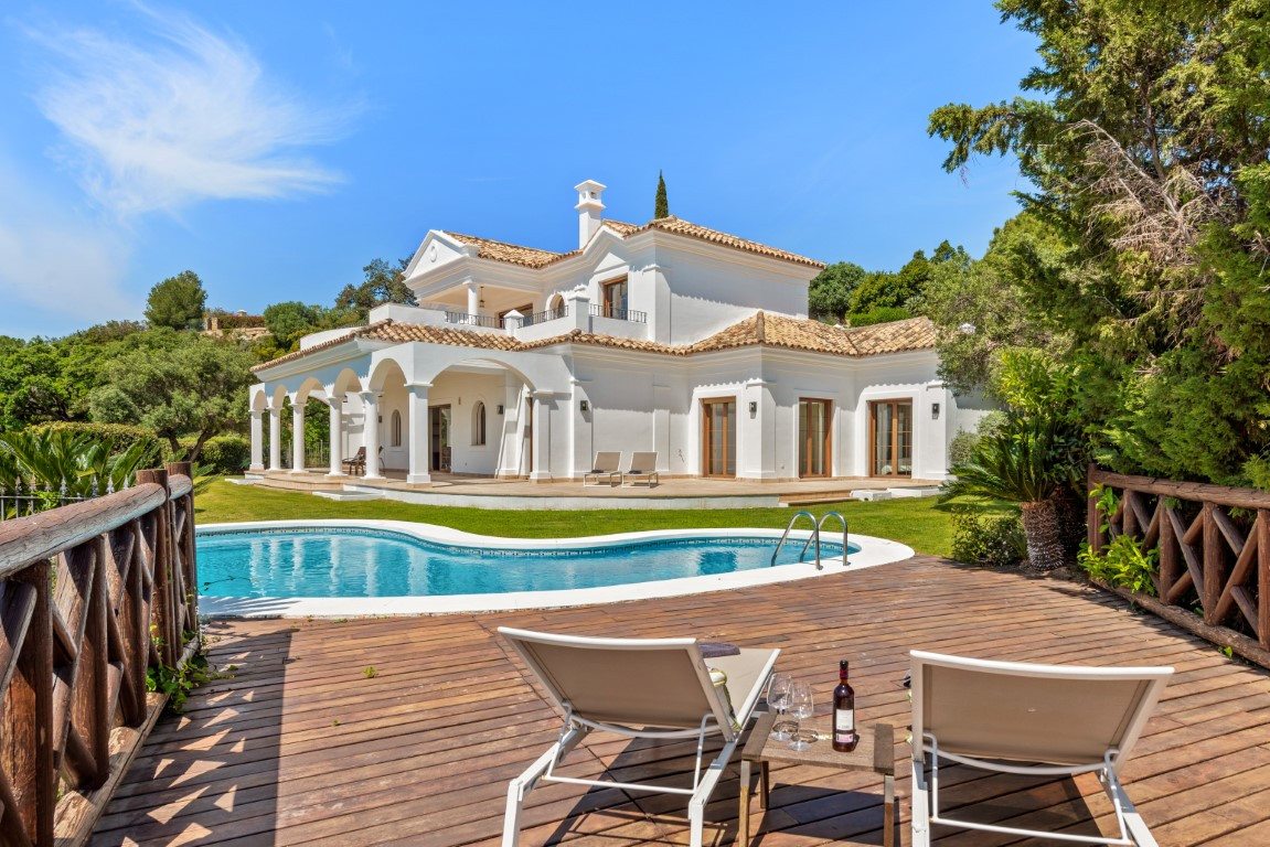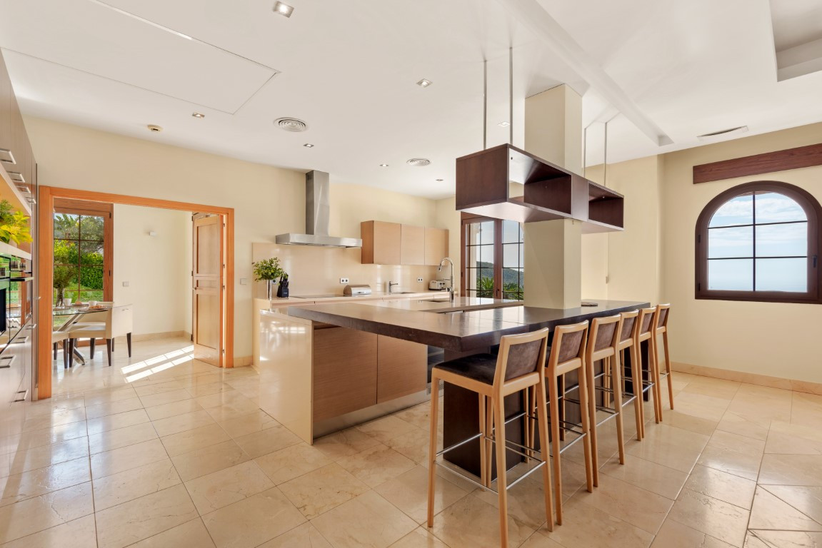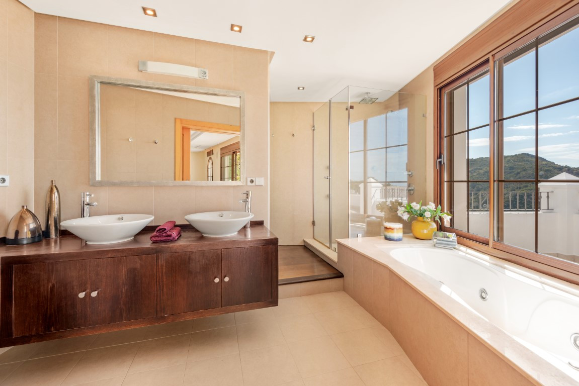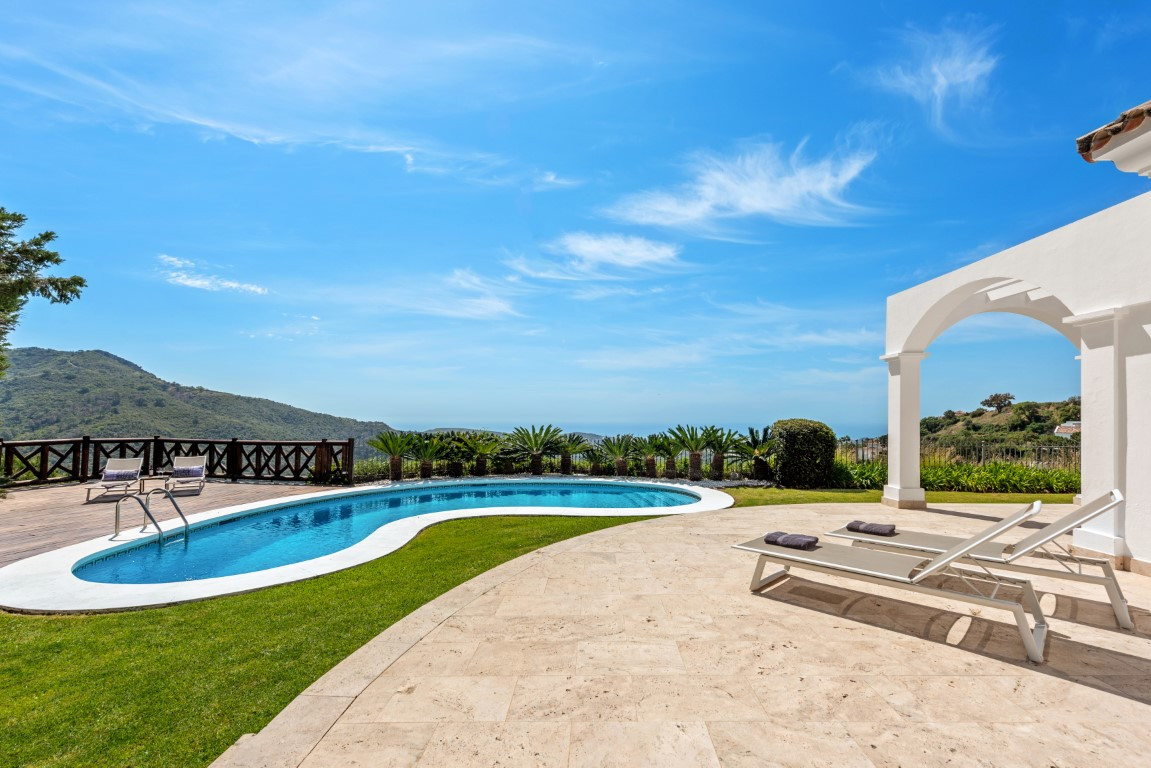 Esta exclusiva villa, con sus majestuosos 889 metros cuadrados de construcción, ofrece una experiencia única y encantadora en la prestigiosa urbanización de Montemayor, en Benahavís. Construida en 2007, esta propiedad es más que una simple casa; es un oasis de lujo y confort que te permite sumergirte en un estilo de vida idílico.Adentrarse en esta villa es adentrarse en un mundo de opulencia y elegancia. Con más de 20 diferentes espacios interiores, incluyendo 5 dormitorios, 5 baños y un aseo, cada rincón está diseñado para deleitar tus sentidos y proporcionarte la máxima comodidad.La amplia zona principal te sorprenderá con vistas panorámicas al mar y a la montaña, invitándote a sumergirte en la belleza natural que rodea la propiedad. El luminoso salón, con sus enormes ventanales y acceso directo al exuberante jardín, te ofrece un refugio acogedor donde relajarte junto a la chimenea. La cocina abierta y el espacioso comedor son el escenario perfecto para disfrutar de deliciosas comidas mientras contemplas el paisaje. Y no podemos olvidar la sala de desayunos, un lugar especial donde comenzar el día con vistas al campo y a la piscina, despertando todos tus sentidos.El jardín de ensueño es una verdadera joya, con su mirador de madera que te ofrece vistas impresionantes de las montañas y del mar Mediterráneo. Disfruta del aire fresco y el sol en la piscina exterior o relájate en la terraza semi cubierta mientras te deleitas con la tranquilidad del entorno.Pero la villa no se detiene aquí. También cuenta con una impresionante piscina interior, sauna y baño turco, perfectos para relajarte y rejuvenecer cuerpo y mente. Además, múltiples trasteros de almacenaje, una sala de cine, una sala de juegos, lavandería y un garaje cerrado con capacidad para hasta 4 vehículos completan las comodidades de esta residencia de ensueño.Recientemente pintada tanto en su interior como en su exterior y su potencial es innegable. Convierte esta propiedad única en tu propio paraíso personal y crea recuerdos inolvidables en un entorno de lujo y elegancia sin igual. ¡Bienvenido a tu soñado hogar! ALA