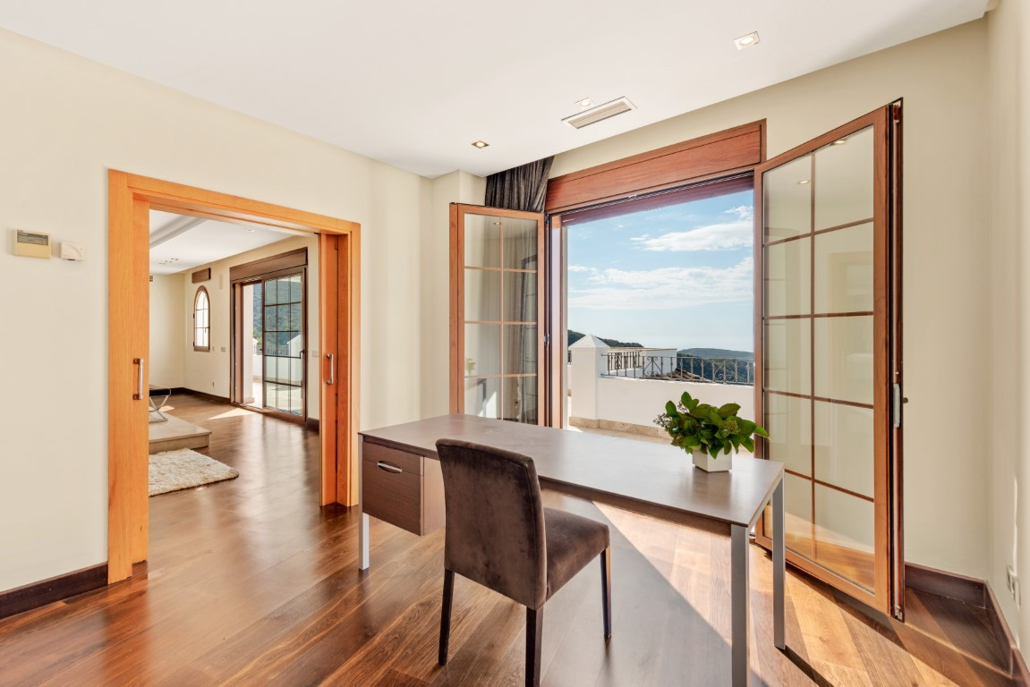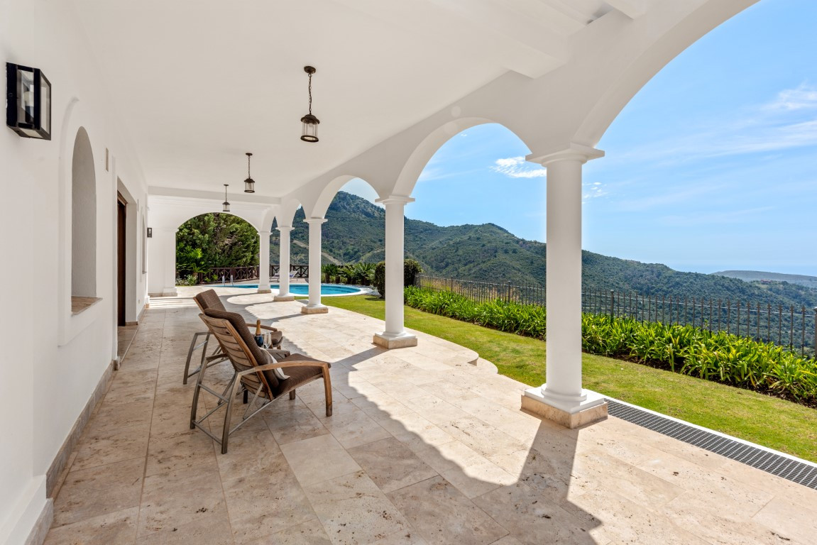 This exclusive villa, with its majestic 889 square meters of construction, offers a unique and enchanting experience in the prestigious Montemayor urbanization in Benahavís. Built in 2007, this property is more than just a house; it is an oasis of luxury and comfort that allows you to immerse yourself in an idyllic lifestyle.Stepping into this villa is stepping into a world of opulence and elegance. With more than 20 differents interior spaces, including 5 bedrooms, 5 bathrooms, and a guest toilet, every corner is designed to delight your senses and provide you with maximum comfort.The spacious main area will surprise you with panoramic views of the sea and the mountains, inviting you to immerse yourself in the natural beauty surrounding the property. The bright living room, with its huge windows and direct access to the lush garden, offers a cozy retreat where you can relax by the fireplace. The open-plan kitchen and spacious dining room are the perfect setting to enjoy delicious meals while contemplating the landscape. And let's not forget the breakfast room, a special place to start the day with views of the countryside and the pool, awakening all your senses.The dreamy garden is a true gem, with its wooden lookout offering breathtaking views of the mountains and the Mediterranean Sea. Enjoy the fresh air and sun in the outdoor pool or relax on the semi-covered terrace while you delight in the tranquility of the surroundings.But the villa doesn't stop there. It also features an impressive indoor pool, sauna, and Turkish bath, perfect for relaxing and rejuvenating body and mind. In addition, multiple storage rooms, a cinema room, a games room, laundry and a closed garage with space for up to 4 vehicles complete the amenities of this dream residence.Recently painted both inside and out its potential is undeniable. Turn this unique property into your own personal paradise and create unforgettable memories in an environment of unparalleled luxury and elegance. Welcome to your dream home! ALA