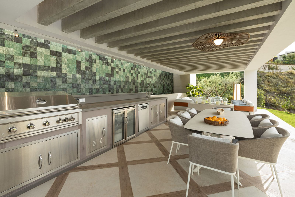 Los espacios exteriores de esta propiedad son la pieza de resistencia, con elegantes pavimentos.