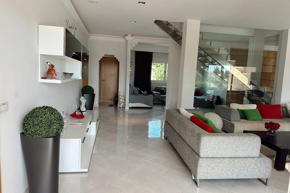 Wonderful and luxurious detached villa, located in the prestigious area of Mijas Golf with southest orientation.This villa has 567m2 built, 1200m2 plot and is distributed on three levels. On the main floor we find a spacious living room, a bright dining room, a fully equipped kitchen, laundry room, a room for office use, guest toilet and the master bedroom en-suite with dressing room and bathroom with hydromassage shower and bathtub embedded in the floor. This room has direct access to the main terrace overlooking the pool and garden as the living room.The second floor has three large bedrooms and two bathrooms. All bedrooms offer fitted closets and have access to a large terrace of 40m2 overlooking the pool and the to the golf course.In the basement we have the fifth bedroom, a bathroom, a sauna for 4 people, a bodeguita, a large game room and two storage rooms.High quality features include A/C hot and cold, marble floors, underfloor heating, central vacuum cleaner,sophisticated alarm system with perimeter motion sensors, satellite TV, home automation system including: lights, blinds, A/C hot/cold, music system.The property includes 2 parking spaces, swimming pool with outdoor shower room and toilet, barbecue area and fruit trees area (nispero, lemons, oranges, pomegranates, almedro, olive trees…).The property is located just a few minutes from stores, bars, restaurants and international schools, 10 minutes from Fuengirola, 25 minutes from Malaga international airport and 20 minutes from Marbella. Despite being a quiet area, Mijas golf conquers the hearts of people from all over the world. It is international and multicultural. The different developments and new works are concentrated around the golf courses Los Olivos and Los Lagos.NGS