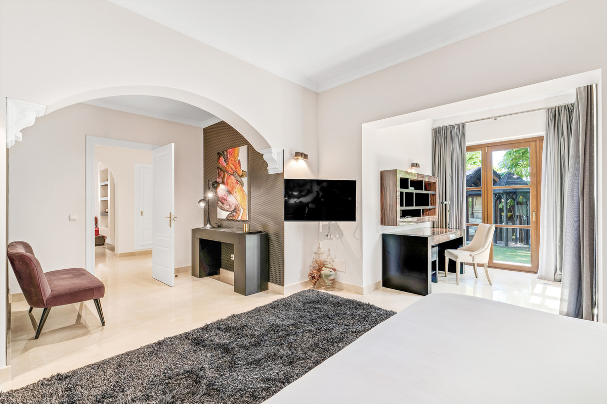 This magnificent villa offers an elevator through all three floors, separate hydraulic under floor heating in each room, individual AC/heating, a security system with cameras, a security guard from 09 pm to 07 am, Marfil marble flooring throughout, Traventiro marble in the Master bathroom and high end appliances in the kitchen. The price of this property includes the furniture. This villa is an absolute gem finished to the highest specifications delivering exquisite design and located in one of Marbella's most desirable areas, just 5 minutes from Puerto Banus and surrounded by some of the most prestigious golf courses in Europe, this property is an absolute must see!